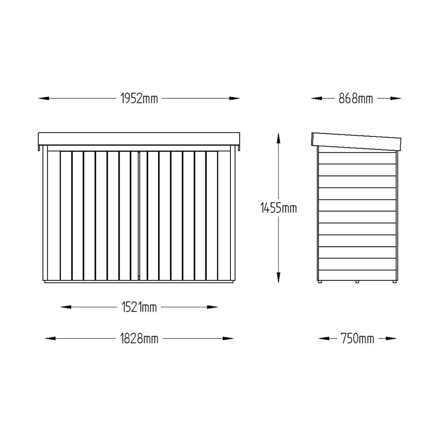 This model features traditional overlap panels on the side and back while the front panel and doors are made from smooth-planed shiplap tongue and groove material. All panels are pressure treated to protect against rot and the base is mounted on pressure treated bearers to prevent damage from standing water. Anti-rot pressure treatment gives a 15 year guarantee against fungal decay. Clever design means the pent roof can be assembled sloping back or forward depending on preference and location.