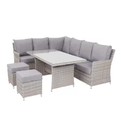 Keter California 5 Seater Outdoor Garden Furniture Sofa And Lounge Set – Graphite With Grey Cushions
