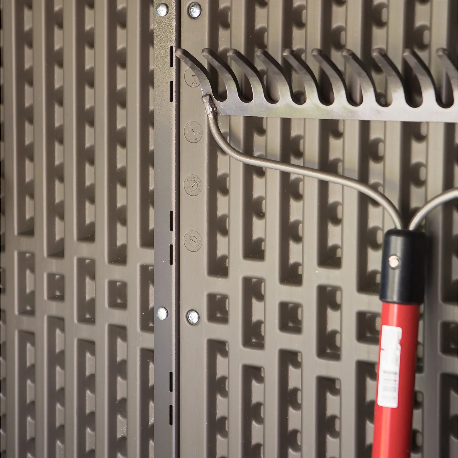 Decluttering your garage and maintaining your yard can be a challenging task. Whether you need a space for yard tools or other equipment, you need the right solution to keep everything organized. Lifetime’s Rough Cut™ Vertical Shed offers an excellent space to store a variety of items around your home. The Rough Cut™ finish features a wood grain texture that provides the natural look and feel of wood without the maintenance of painting or staining. It is also UV-protected and weather resistant. The shed frees up valuable space in your garage by providing plenty of room for bigger items like rakes, brooms, shovels, storage totes, bins and even most push mowers. The durable, impact-resistant build, steel-reinforced walls, and lockable doors (lock not included) provide plenty of protection for your belongings. With the Lifetime Vertical Shed, you can keep your yard looking organized and pristine.