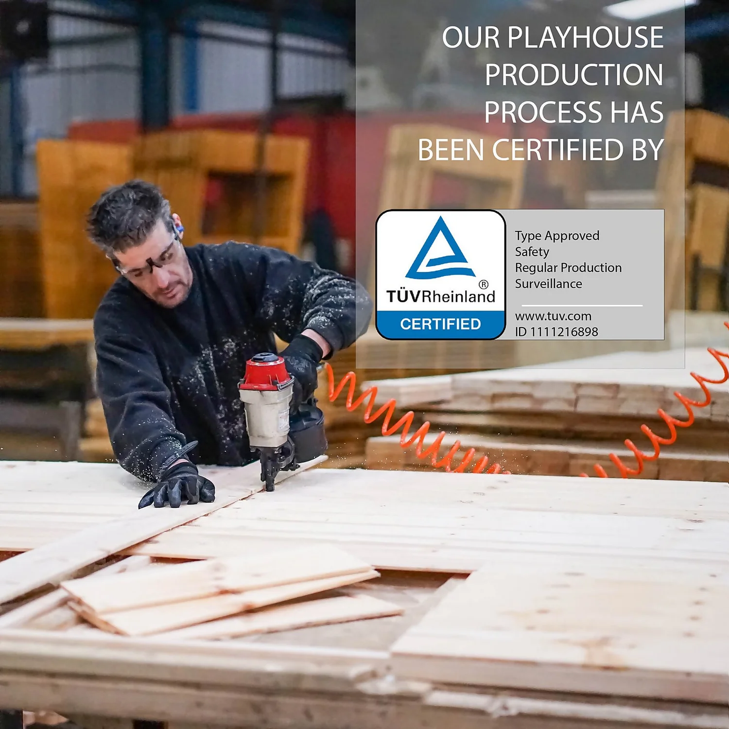 All of our playhouses come with an Anti-rot guarantee, to ensure it looks great and lasts the test of time, this playhouse in particular comes with a conditional 10 year Anti-rot guarantee as well as a 12 month manufacturer’s warranty. Annual re-treatment is required to maintain your building and the Anti-rot guarantee. Suitable for children aged 36 months+