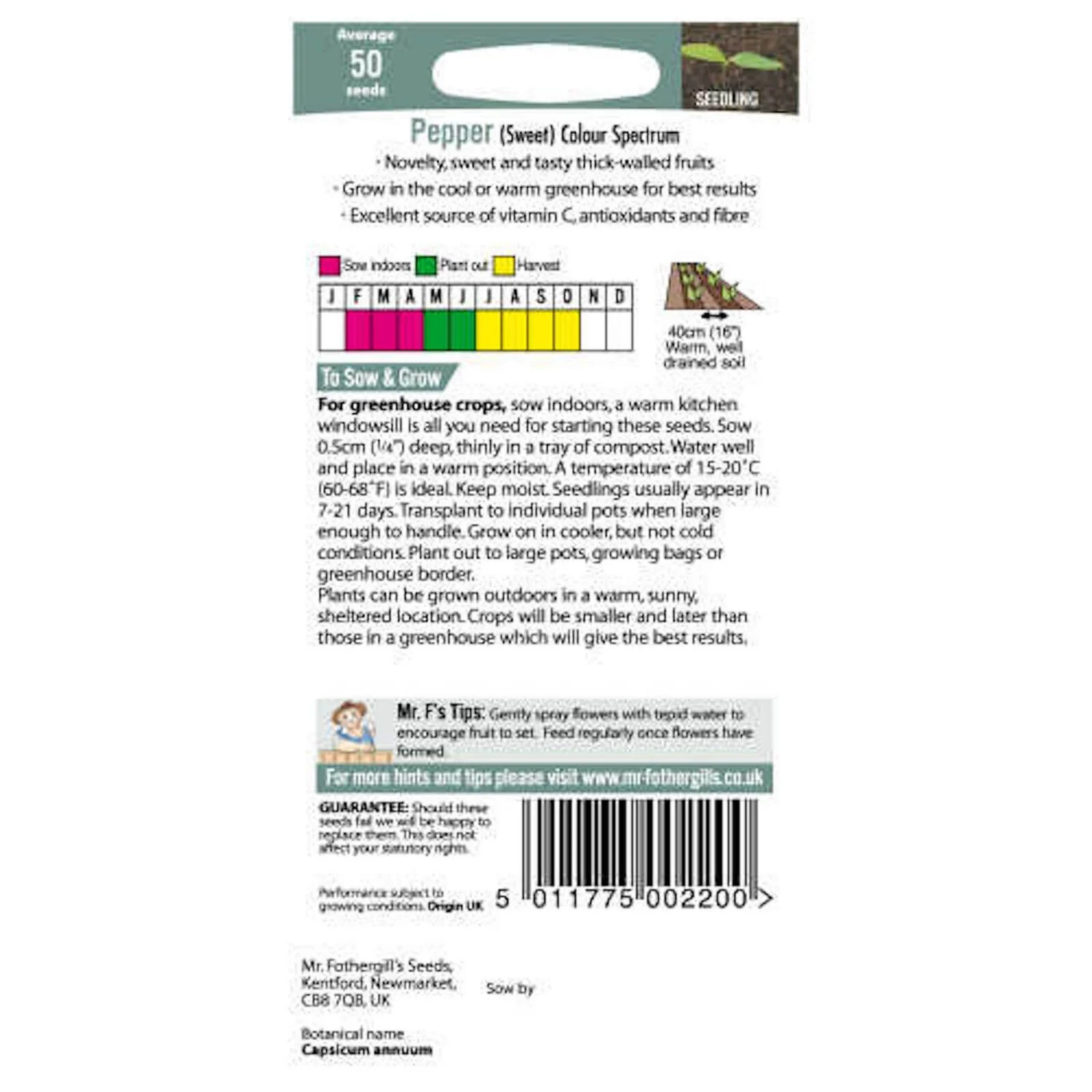 Sweet Pepper Colour Spectrum (Capsicum annuus) produces thick walled sweet fruits in a range of great colours. Best grown in a greenhouse.
